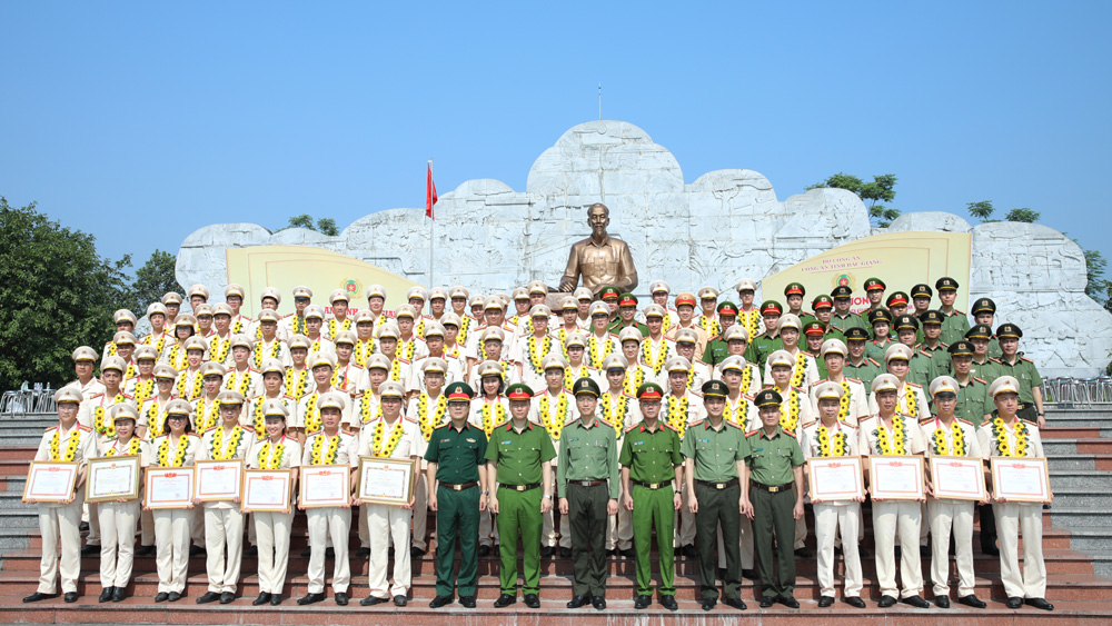 75 điển hình tiên tiến được tuyên dương chụp ảnh lưu niệm với các đồng chí lãnh đạo Công an tỉnh Bắc Giang - Ảnh: Công an Bắc Giang